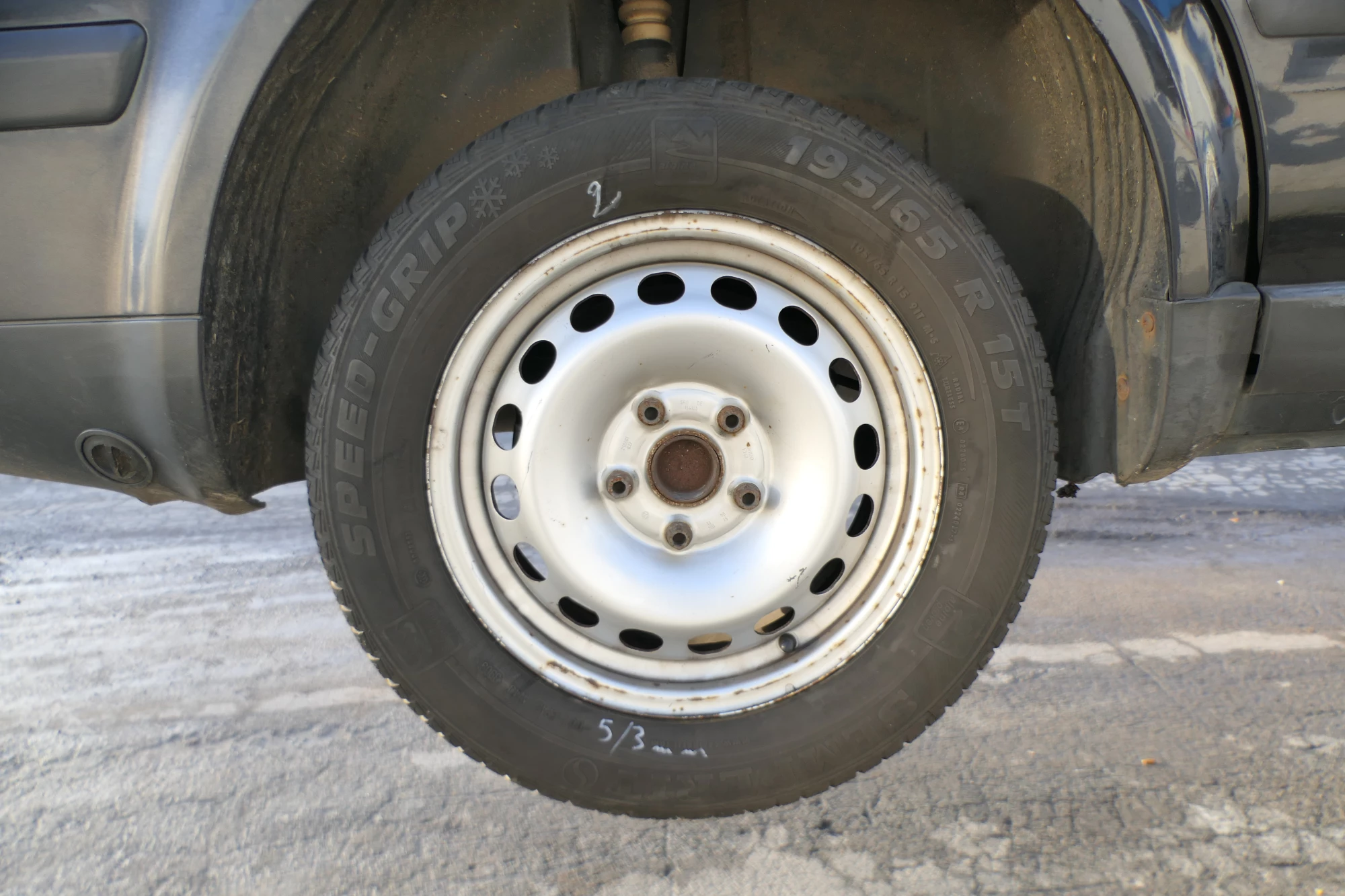 Angeboten wird ein Satz Felgen mit Reifen, die man wechseln muss, 195/65 R15 91H Herstellung 2506 auf Felge 6jx15H2 ET47 2K0601027 aus einem VW Caddy 2K Bj. 2006.