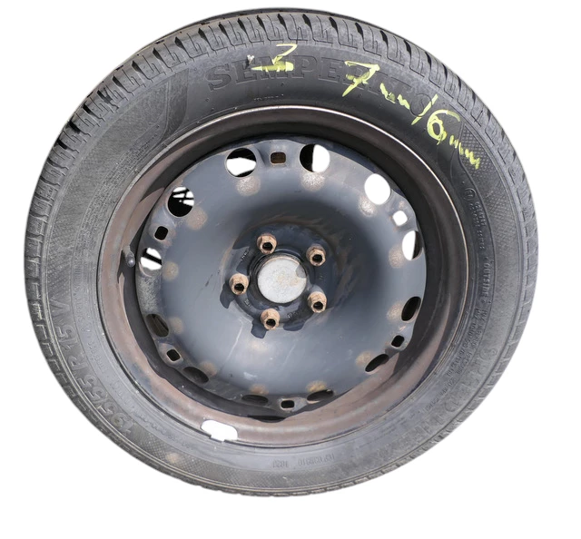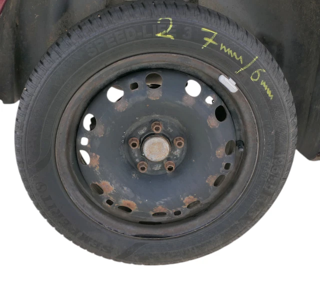 Angeboten wird ein Satz Reifen auf Felgen mit ca. um die 2x 4-5 mm Profil von Barum, Herstellung 0618 und 2x ca. 6-7mm Profil von Semperit, Herstellung 1023, auf Felge 6J x15 H2 ET43 LK 100 aus einem VW Polo 9N Bj. 2005.