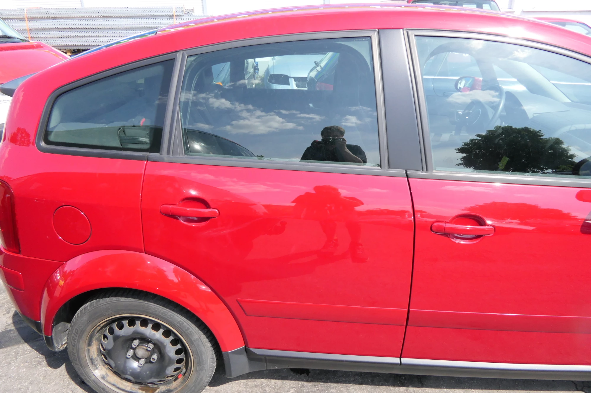 Audi A2 8Z Tür hinten rechts rot LY3C -mit Rahmen + Scheibe