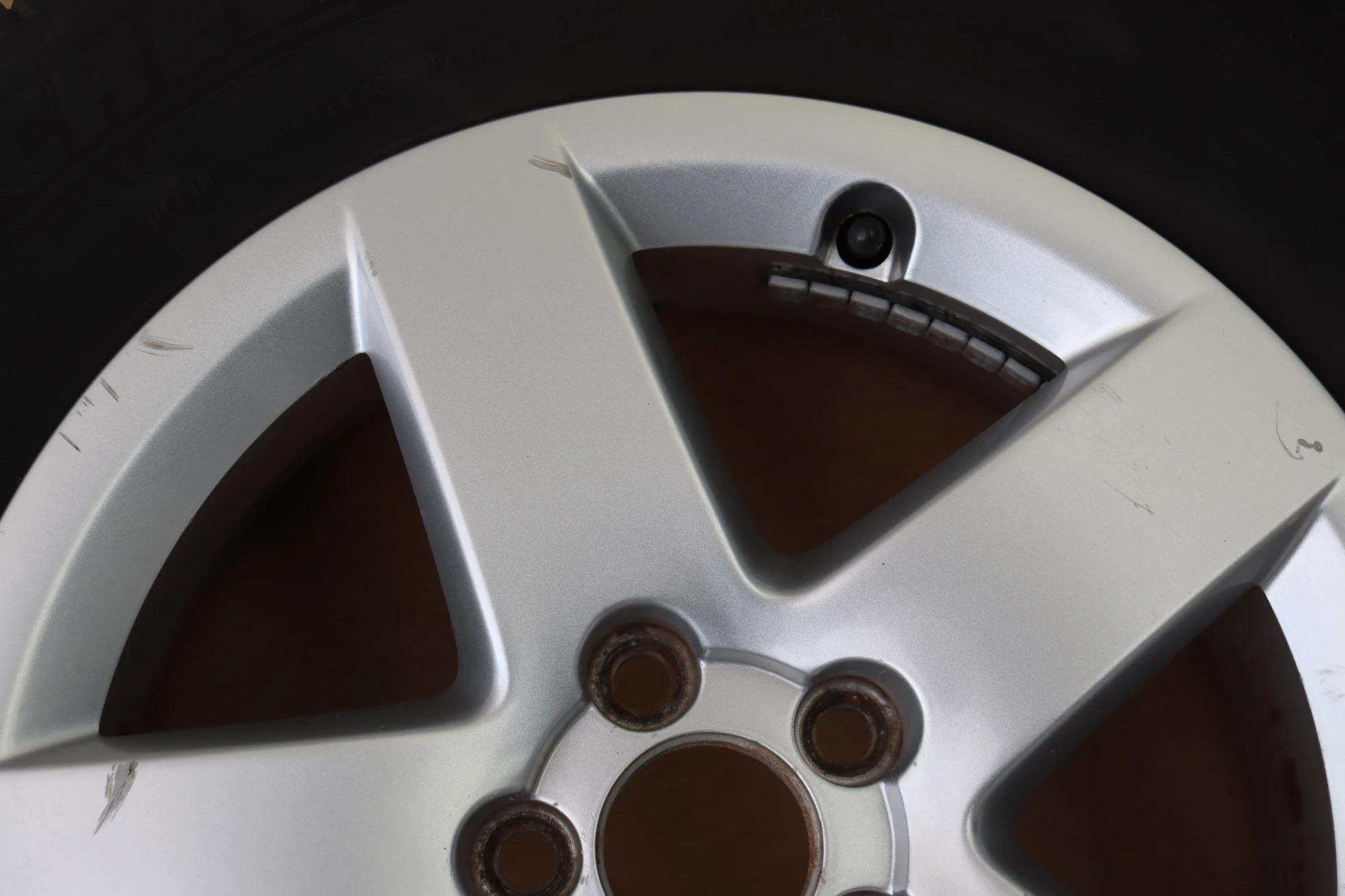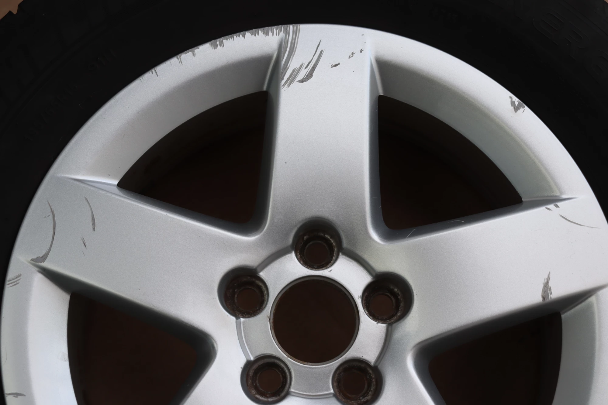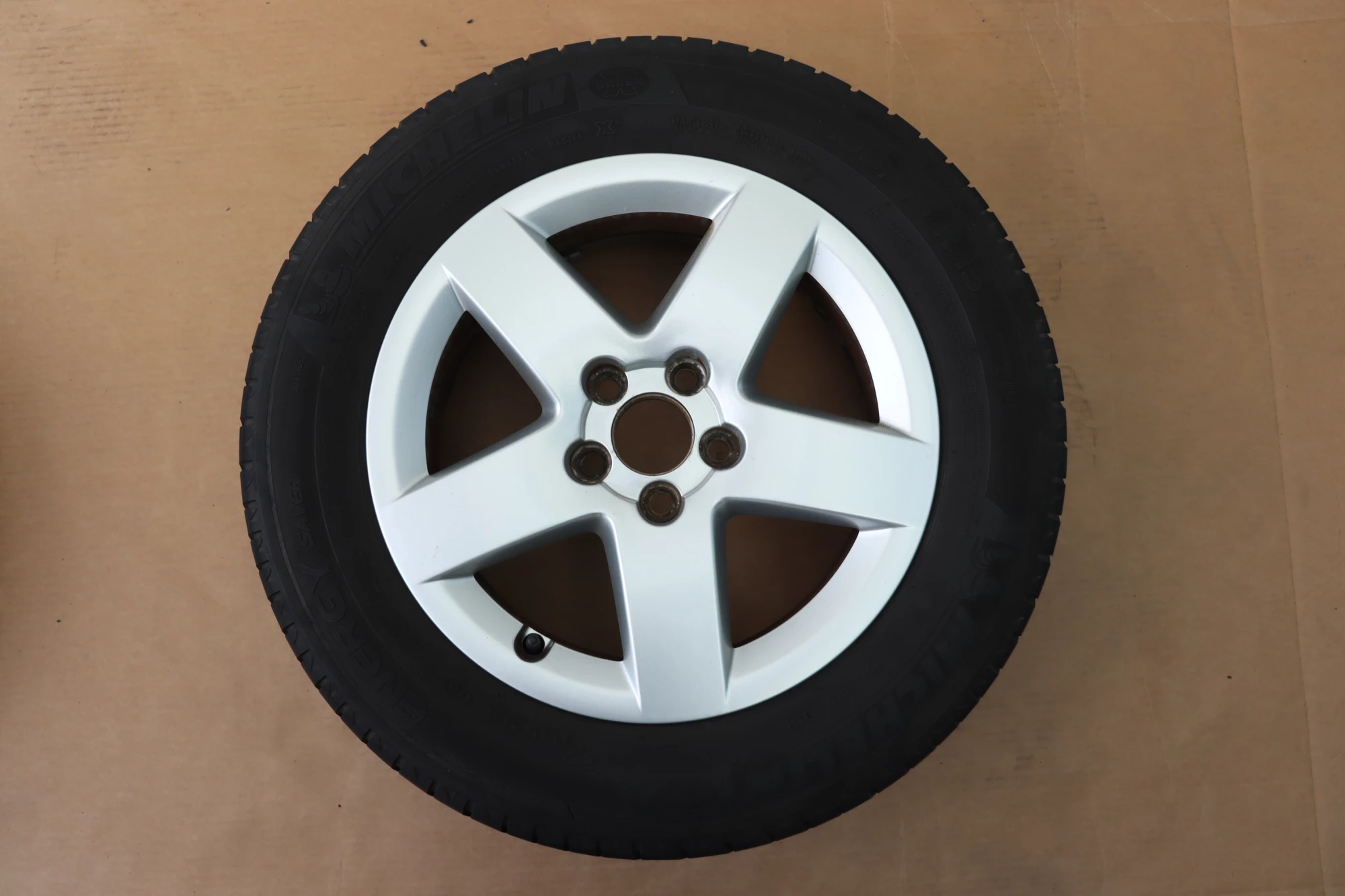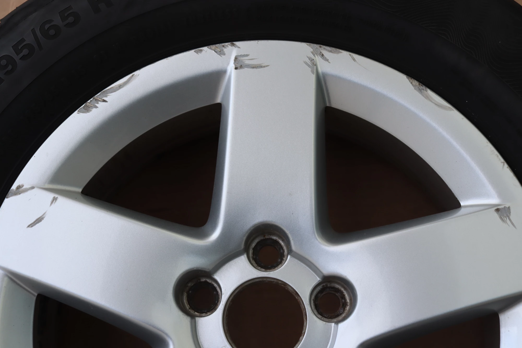 Angeboten wird ein Satz Alufelgen mit Sommerreifen 195/65 R15 91H, 2x ca. 3mm Profil und 2x ca. 4mm Profil, von Continental und Michelin, Herstellung 2x 1017 und 2x 4713 auf Audi Felge 8L0601025P 6jx15H2 ET38 aus einem Audi A3 8L Bj. 2000.