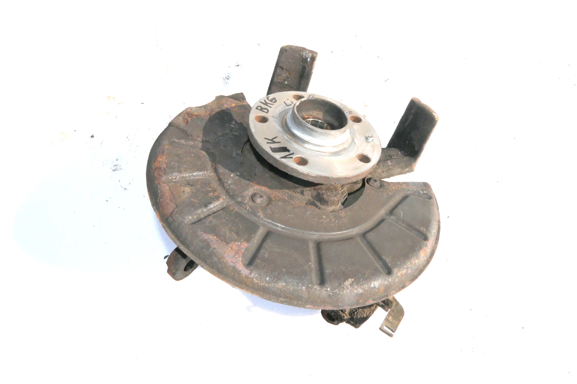 Angeboten wird ein Achsschenkel aus einem VW Golf 5 1,4 16V BUD Motor Bj. 2004.