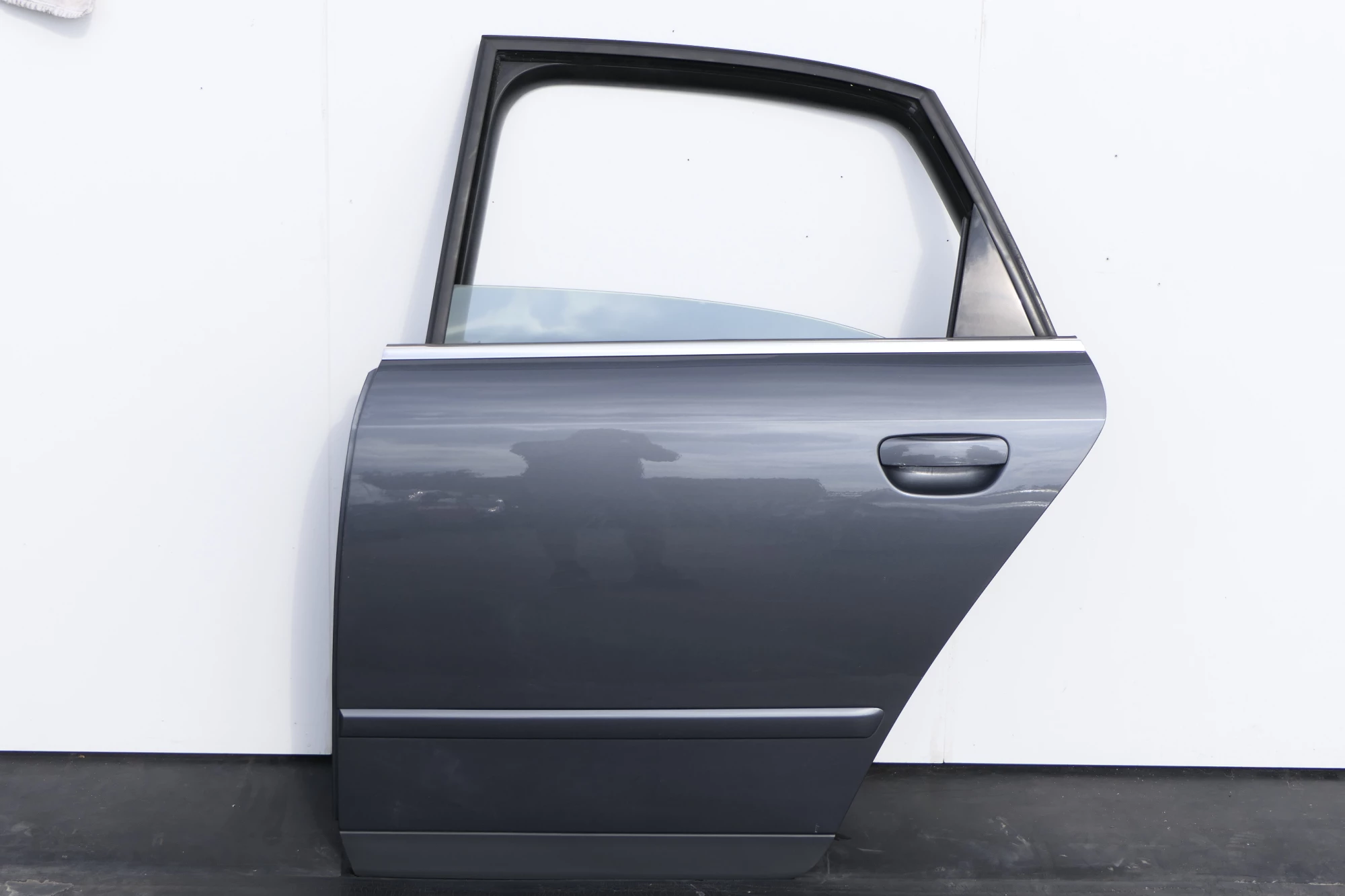 Nur das lackierte Türblech passt auch bei der Limousine, kann man problemlos vom Rahmen abbauen. Angeboten wird eine Tür aus einem Audi A4 8E B6 Kombi Bj. 2004.