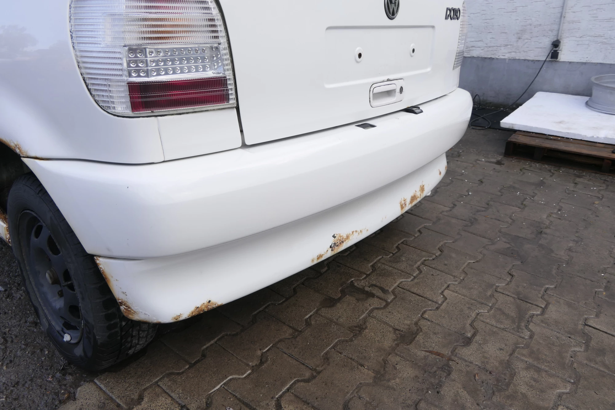 Angeboten wird eine Heckstoßstange (NUR das Oberteil der zweigeteilten!) aus einem VW Polo 6N Bj. 1996.