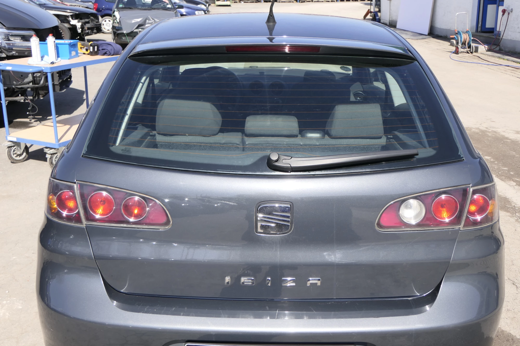 OHNE 3. Bremsleuchte, ohne Anbauteile, ohne Wischer, ohne Schloß, etc. Angeboten wird eine Heckklappe aus einem Seat Ibiza 6L Bj. 2004.