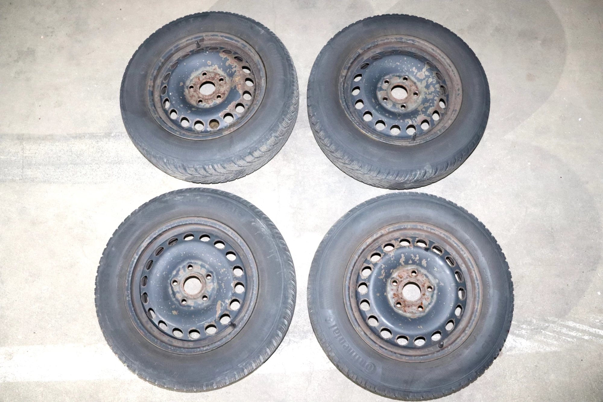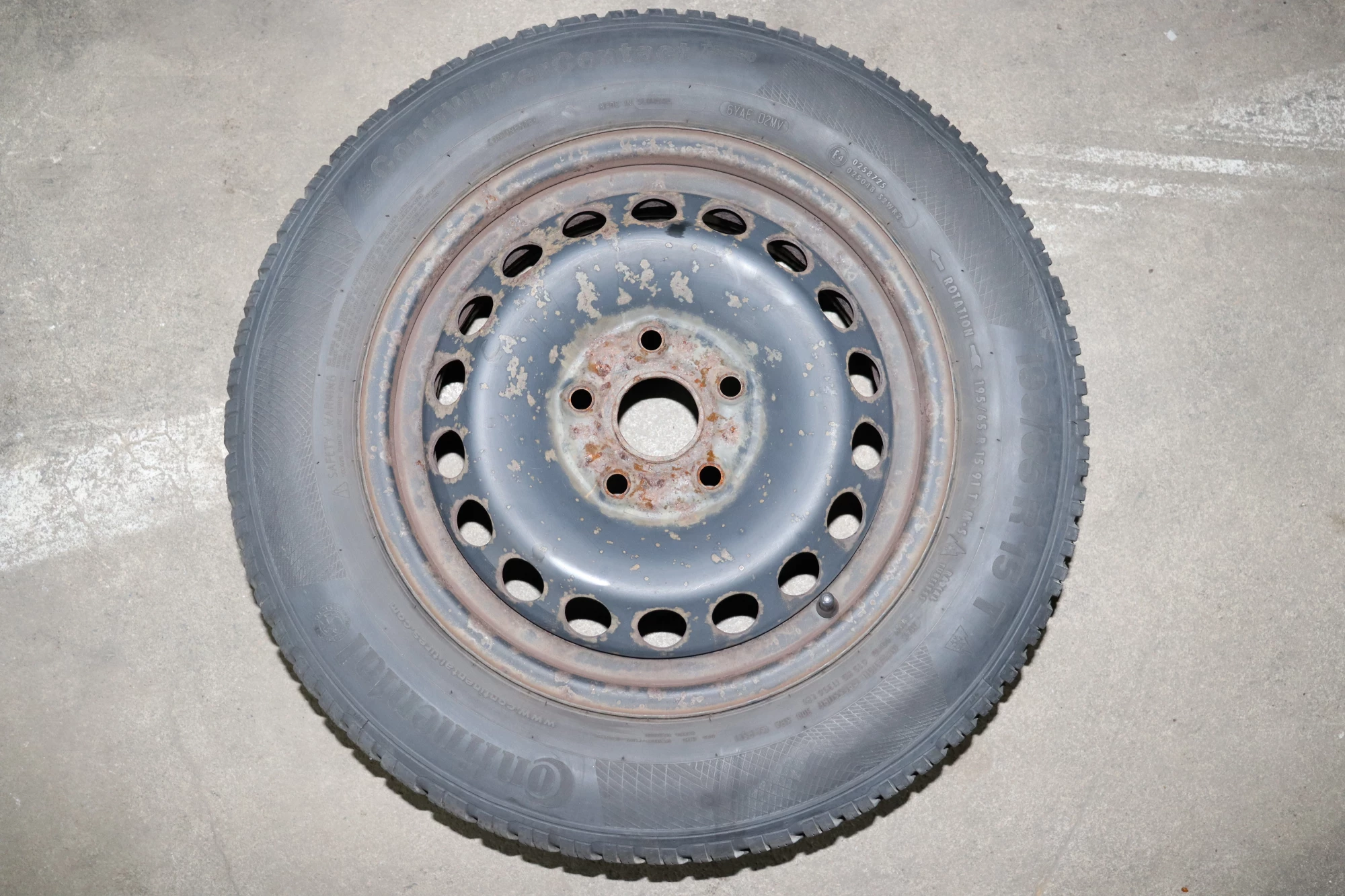 Angeboten wird ein Satz Winterreifen mit ca. 2x um die 5-6 mm Profil von Continental, Herstellung 2214 und 2x mit ca. 4mm Profil 195/65 R15 91T auf Felge 6jx15H2 ET47 aus einem Skdoa Octavia 1Z Bj. 2006.