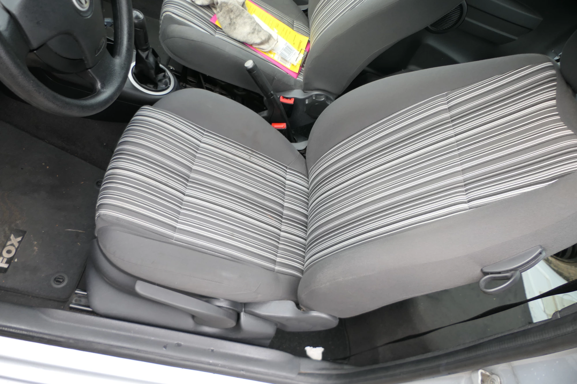 Lieferung ohne Kopfstütze. Angeboten wird ein Fahrersitz (höhenverstellbar, OHNE Sitzheizung und OHNE Airbag) aus einem VW Fox 3-Türer Bj. 2005.