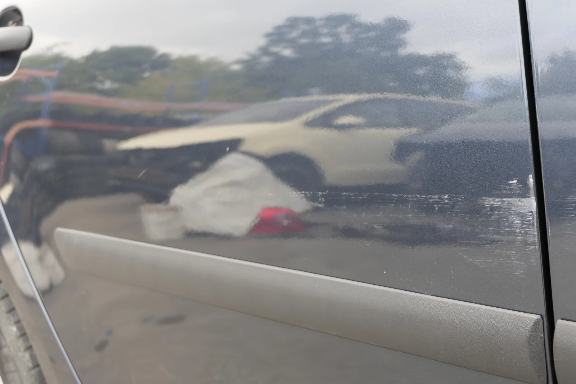 Eine kleine Delle. Angeboten wird nur das lackierte Türblatt, also ohne Rahmen etc.,aus einem VW Golf 5 4/5-Türer (KEIN Kombi) Bj. 2005.