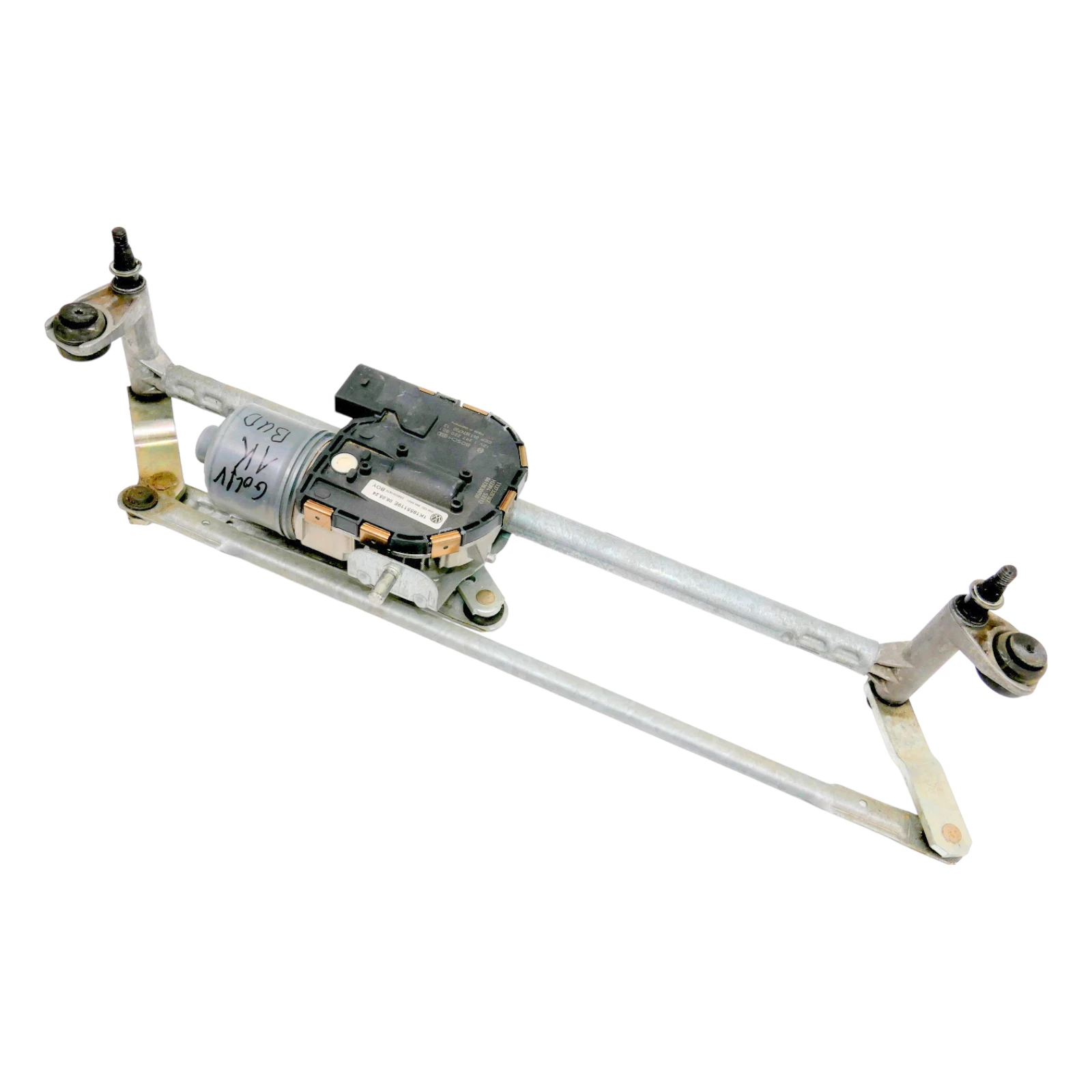 Angeboten wird ein Scheibenwischermotor vorne mit Gestänge aus einem VW Golf 5 Bj. Ende 2004.