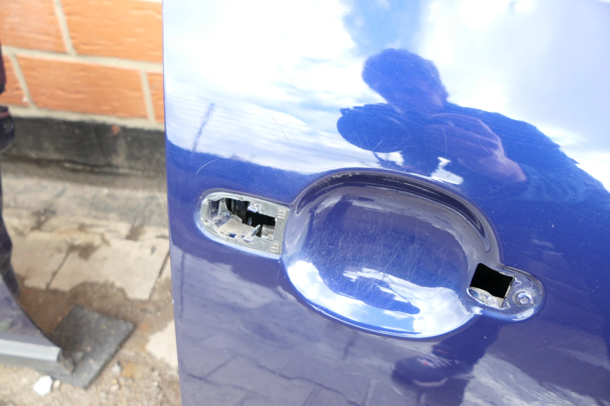 Die schwarze Abdeckung links vom Fenster kann man wechseln. Angeboten wird eine Tür vorne links (ohne jegliche Anbauteile) aus einem VW Passat 3BG Kombi Bj. 03/2003 1,6 74kw Benziner.