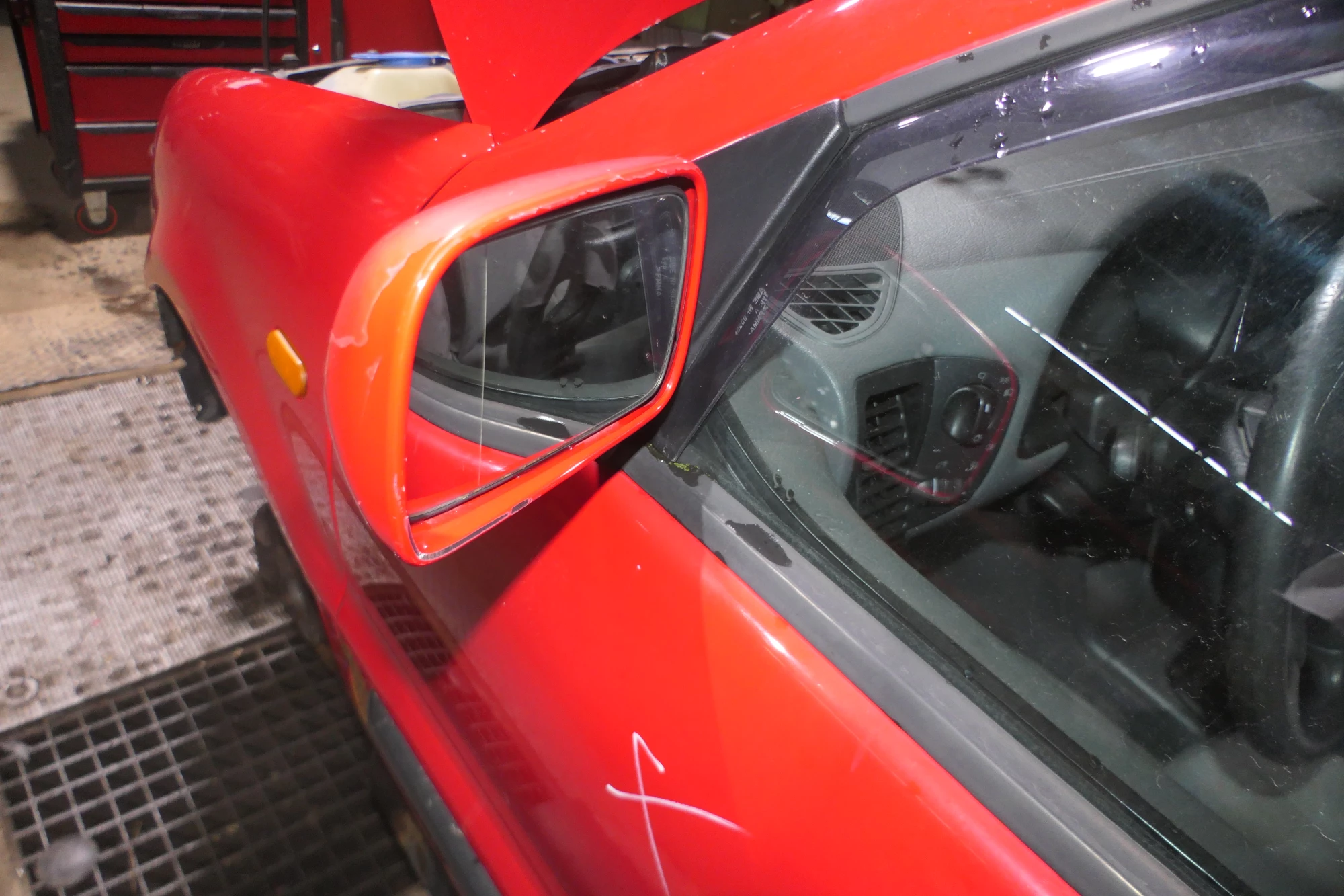 VW Polo 6N manueller manuell Spiegel Außenspiegel links mit Glas rot LP3G flash