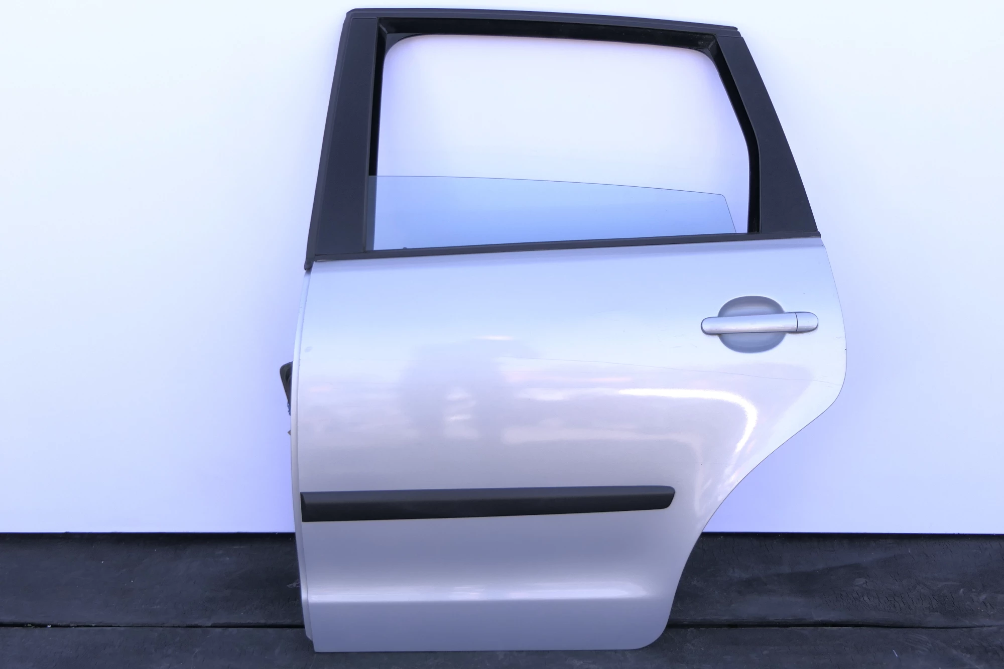 Angeboten wird eine Tür mit Scheibe (ohne Anbauteile, somit ohne Fensterheber, ohne Schloß, ohne Verkleidung, etc.- aber mit Leisten) aus einem VW Polo 9N Bj. 2004 4-Türer.